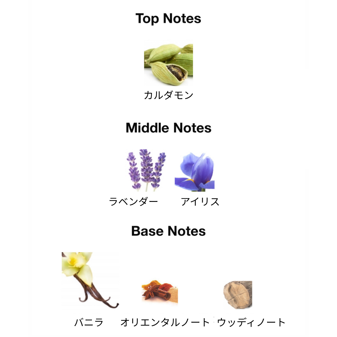 カルダモンやラベンダー、アイリスのスパイシーでエレガントなトップノートから始まり、次第にバニラとウッディな香りが重なって、温かみと深みのある印象に変化します。クラシックな「ル・マル」のフレッシュさを残しつつ、よりダークで洗練された仕上がりです。
